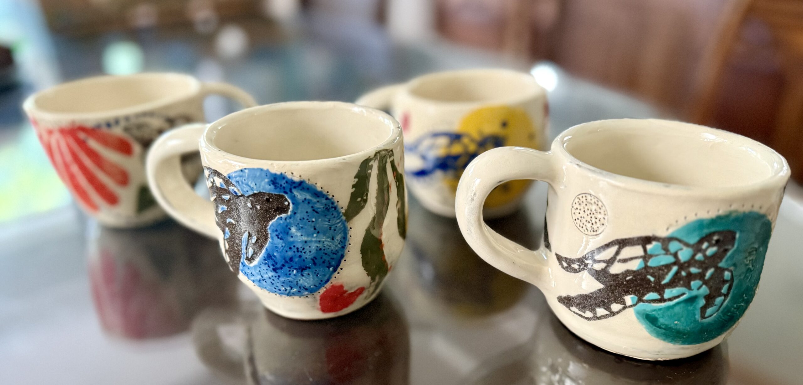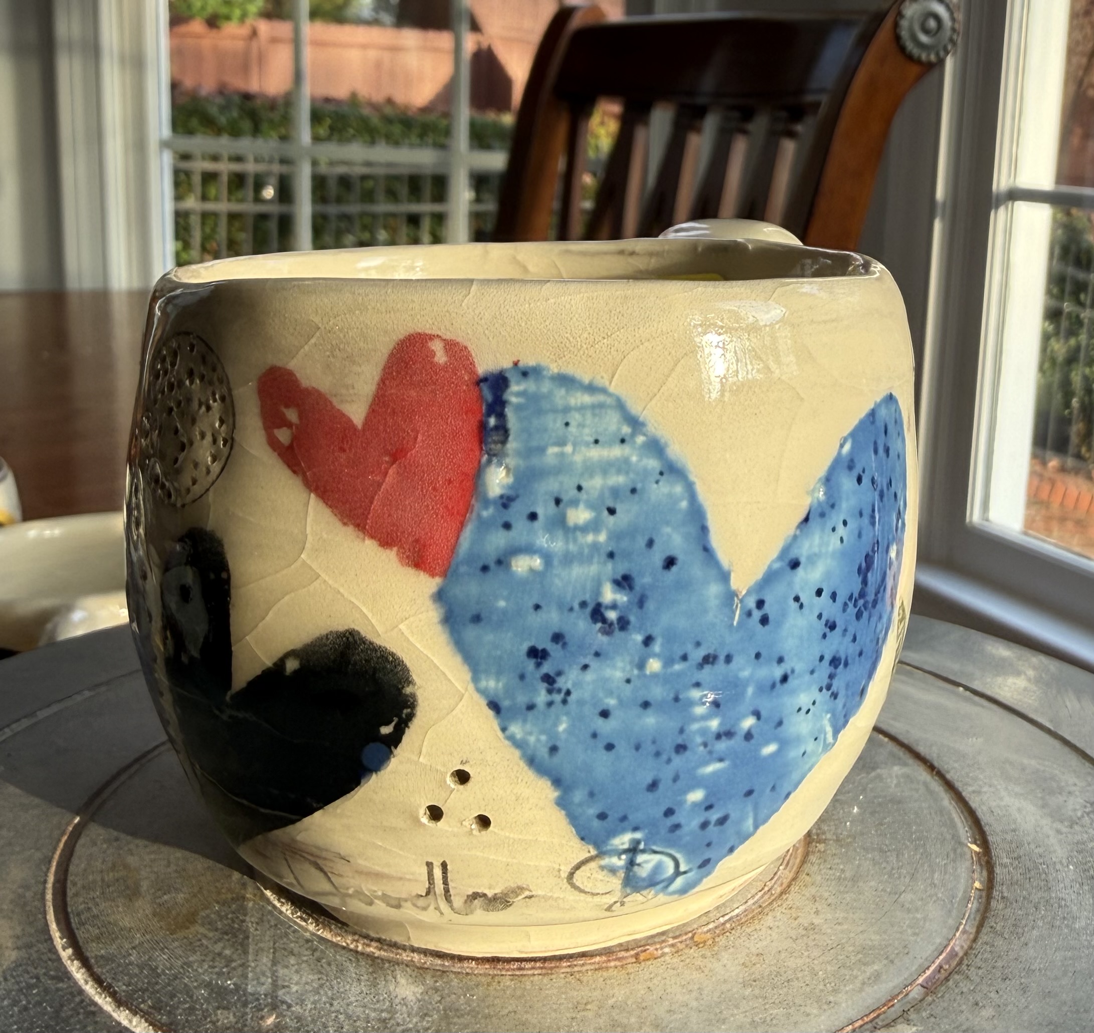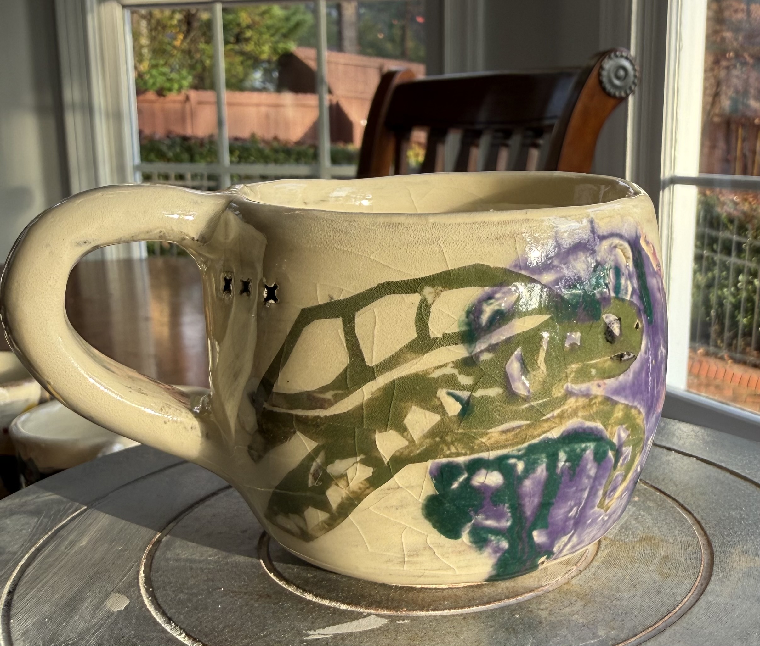 This is a hand thrown Green Sea Turtle Triple Heart Mug