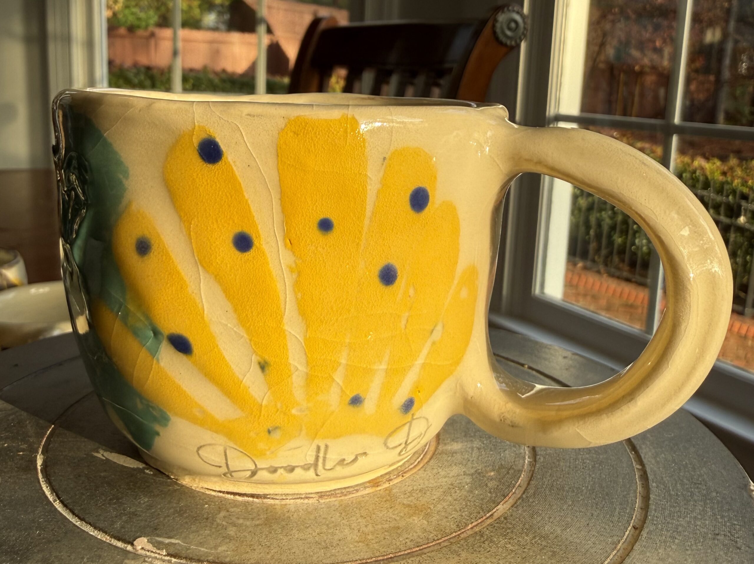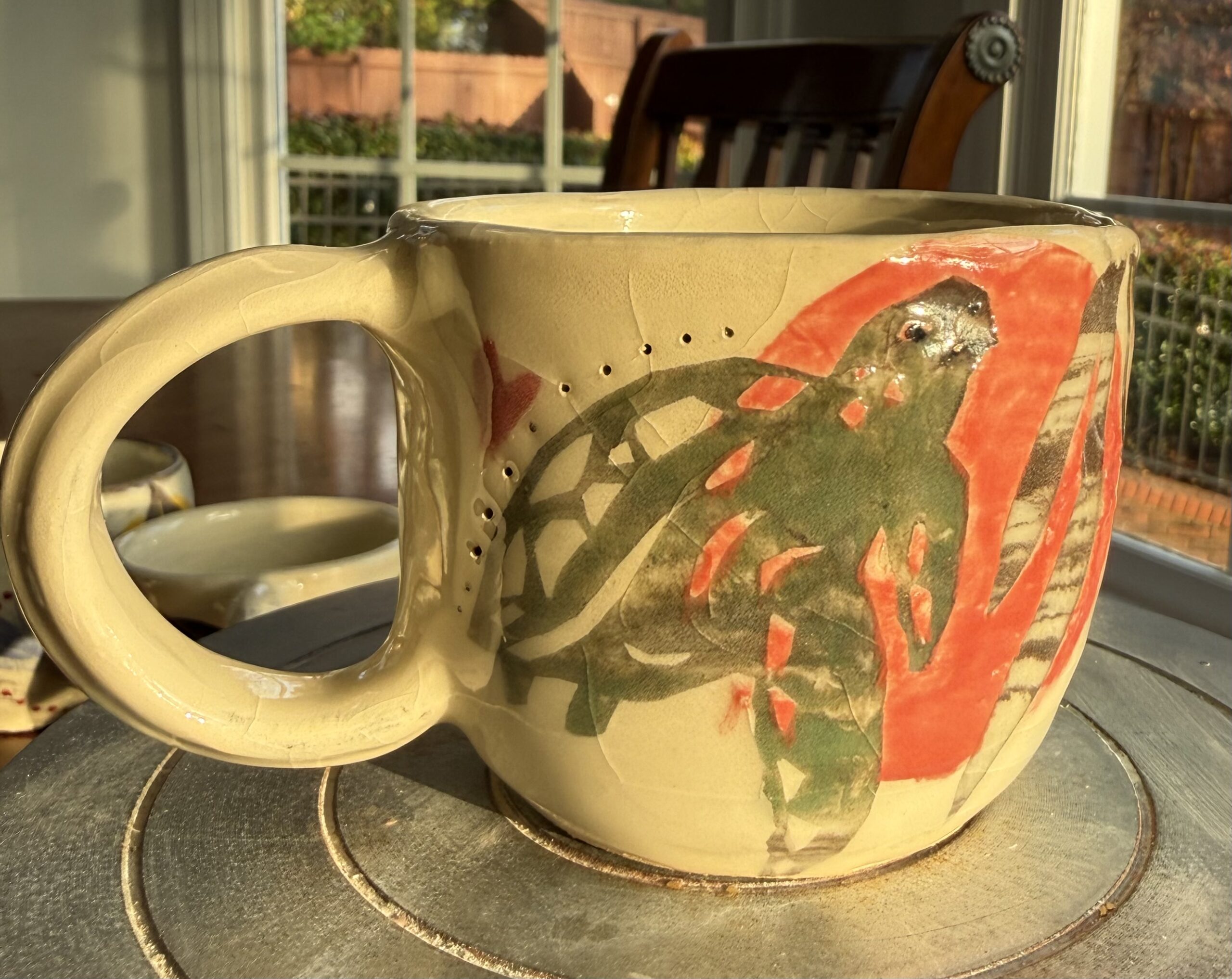 This is a hand thrown Sea Turtle Sea Weed Mug
